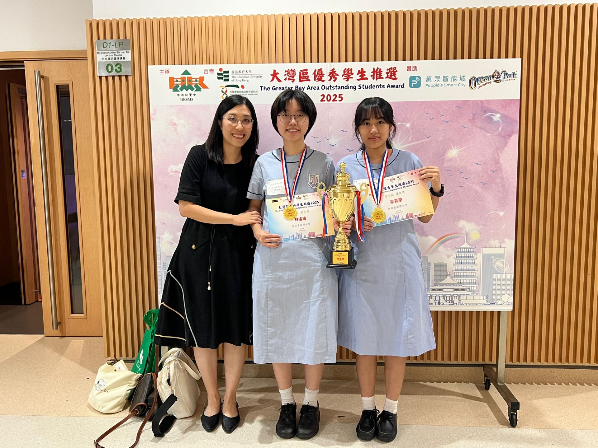 6D林洛維及6C梁嘉慧榮獲大灣區優秀學生優良獎,而5D張慧如榮獲大灣區優秀學生優等獎,以表揚三位同學不僅在學業成績上表現優異,同時在課外活動、社會服務等方面也有出色表現。