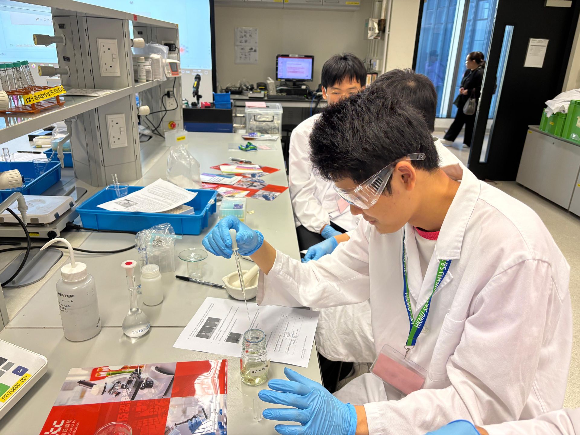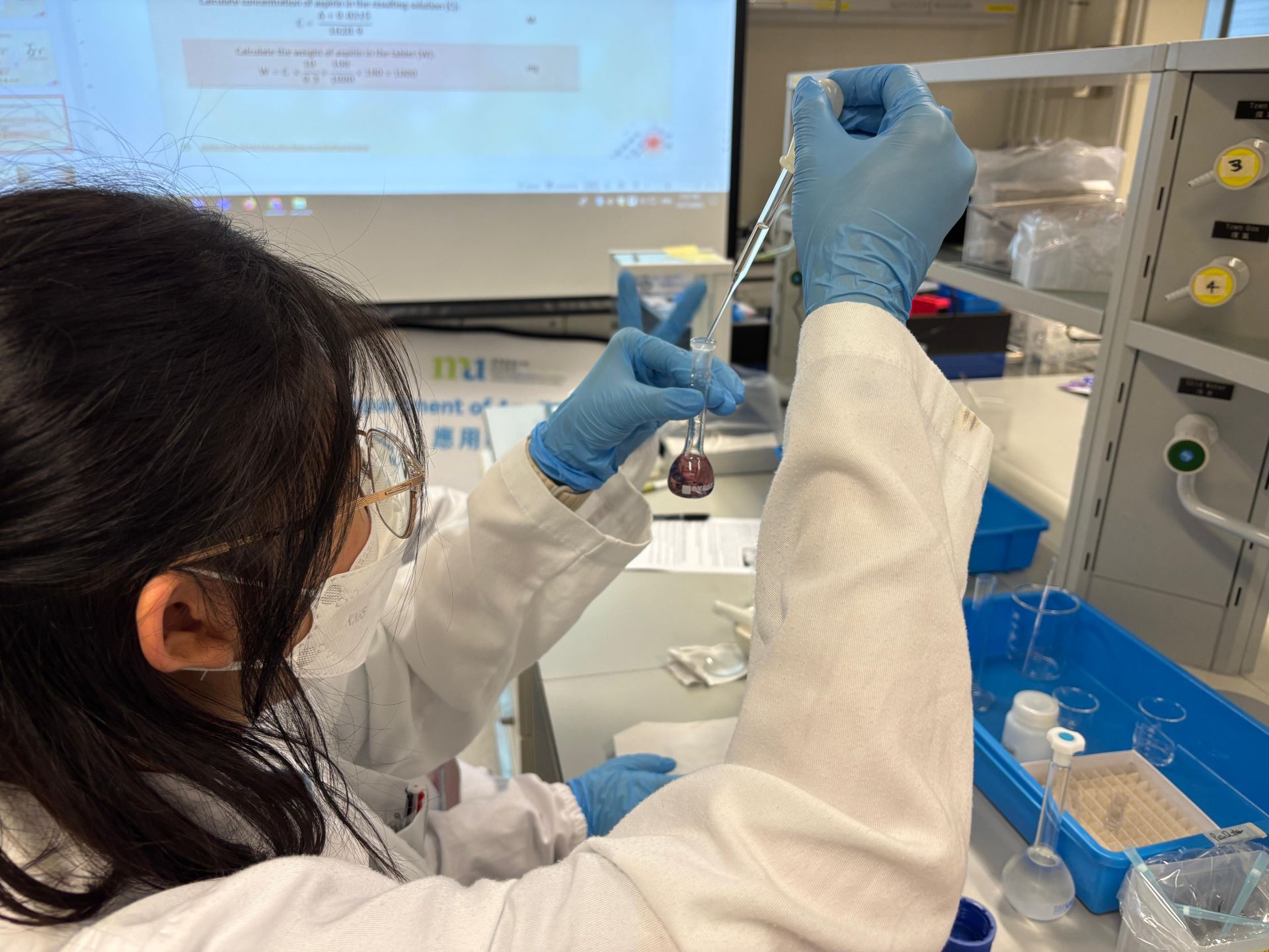 20251217日,本校帶領了23位中五級修讀化學的同學,到香港都會大學實驗室參與「檢測及認證學生工作坊」。工作坊會介紹與藥品及營養補充劑相關的化學實驗,並讓學生了解有關檢測及認證的學位課程及就業途徑,協助他們進行生涯規劃。