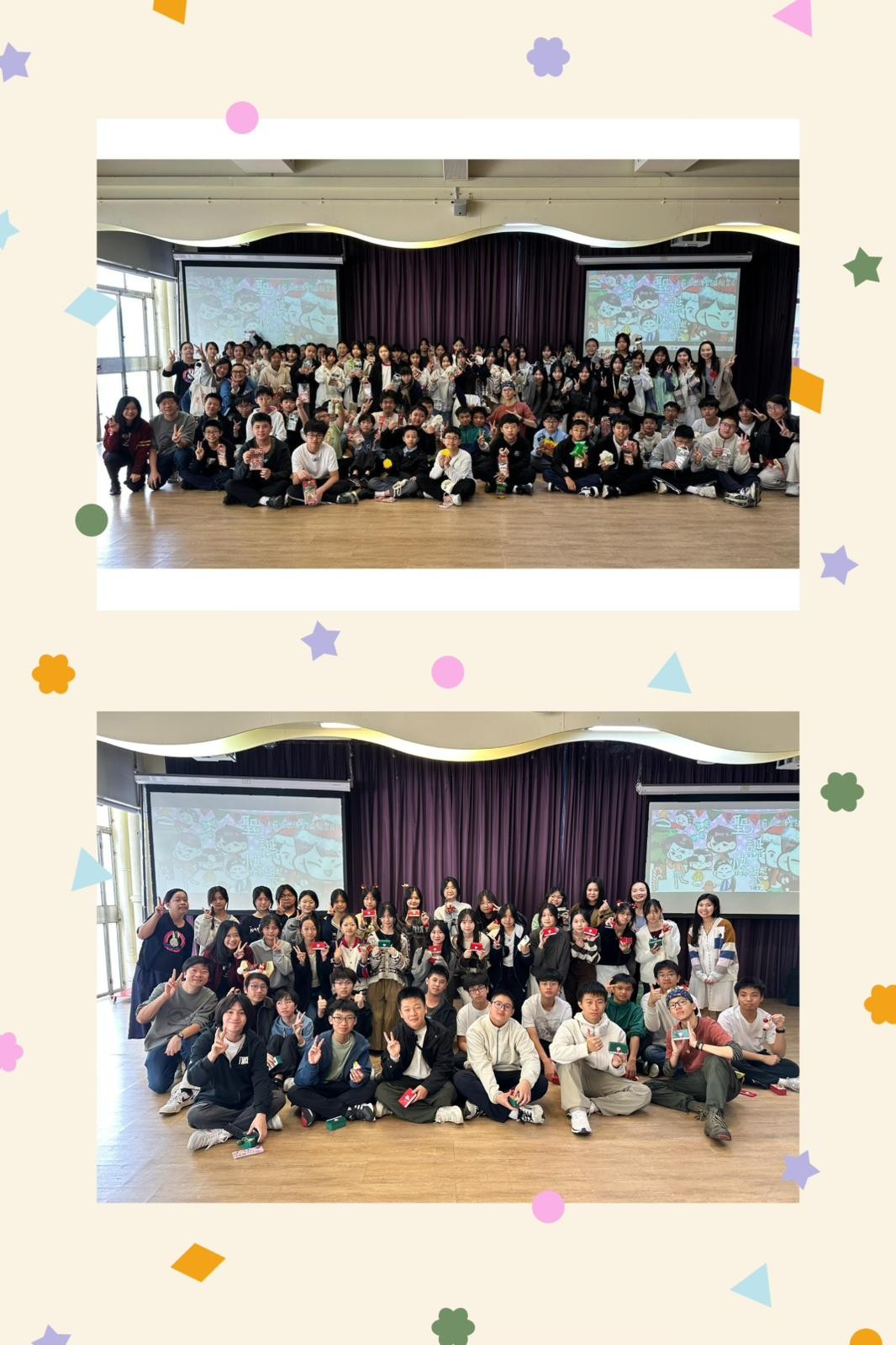 輔導組於12月22日舉辦了「薪火燃傳聖誕相聚日」,為中一同學送上關懷與祝福。活動旨在協助中一學生更好地融入校園生活,並一同營造溫暖、和諧的校園氣氛。