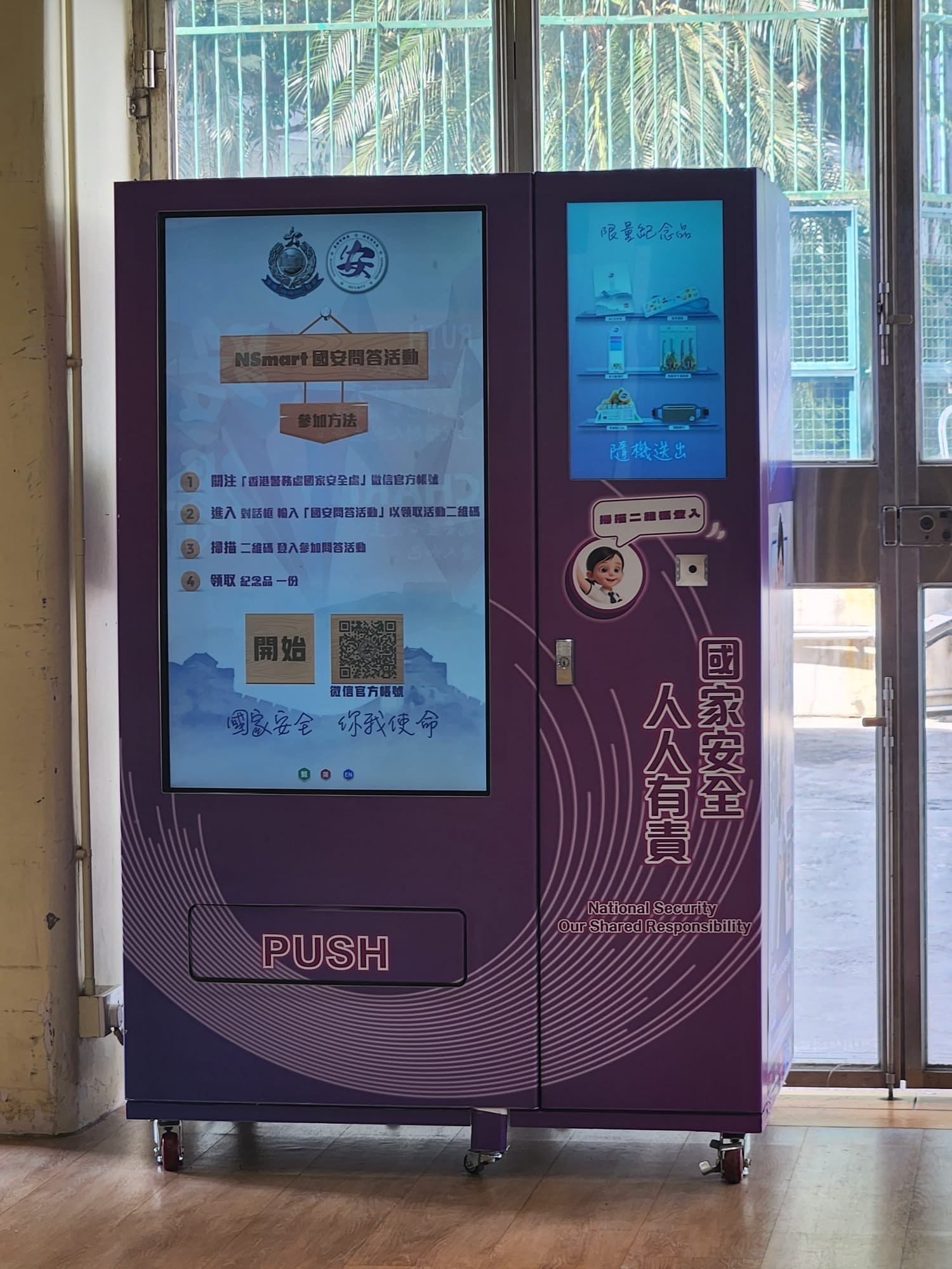 為提升本校同學對國家安全的認識,訓導組、德育、公民及國民教育組與大埔警區合作,在29日至213日期間,於本校操場設置「NSmart 國安問答機」,讓同學透過回答與國家安全相關的問題,深入了解《憲法》、《基本法》及《香港國安法》的資訊,明白維護國家安全的重要性,共同守護國家,同學更可隨機獲得多款精美而實用的紀念品。同學均積極參與。