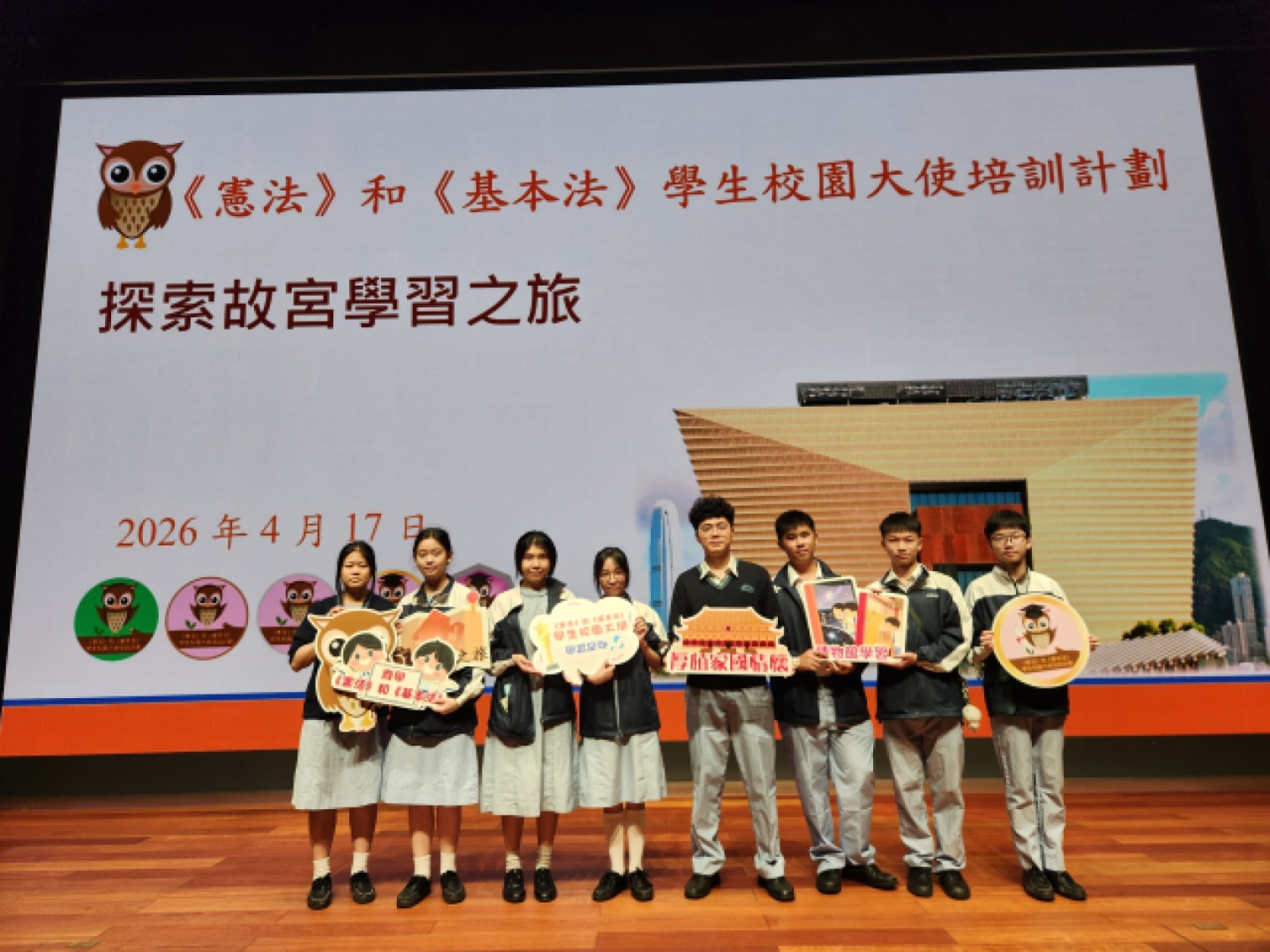 為讓學生更認識中華文明起源、形成與發展的歷史,瞭解中華文明的燦爛成就,並從而建立正確的歷史觀和價值觀,本校將於2026年4月17日帶領《憲法》和《基本法》學生校園大使參與由教育局課程發展處 - 德育、公民及國民教育組所舉辦的「探索故宮學習之旅」活動。